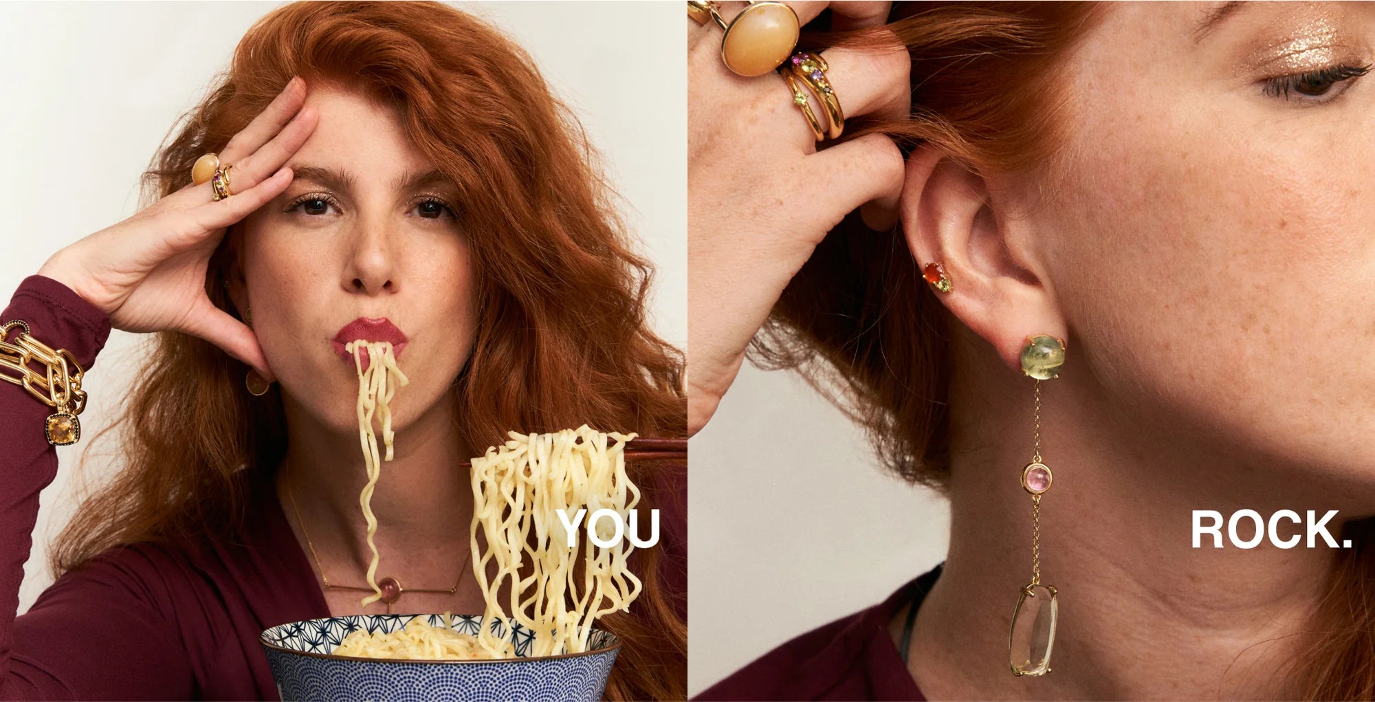 COLLAR AROS DE PLATA BAÑADO EN ORO 18 KT AMARILLO CON PIEDRAS DE CUARZO HEMATOIDE