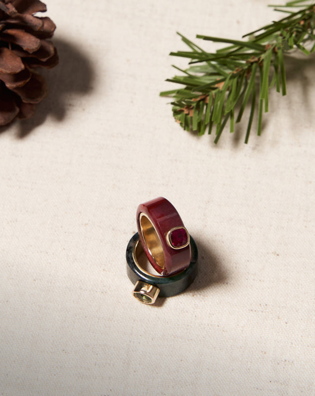 ANILLO ROC VERDE PLATA BAÑADO EN ORO 18KT AMARILLO