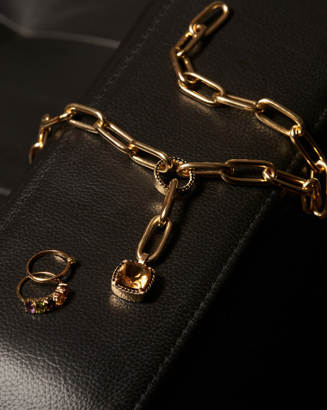 COLLAR ICON DE PLATA BAÑADO EN ORO AMARILLO 18 KT CON CITRINO Y ONIX