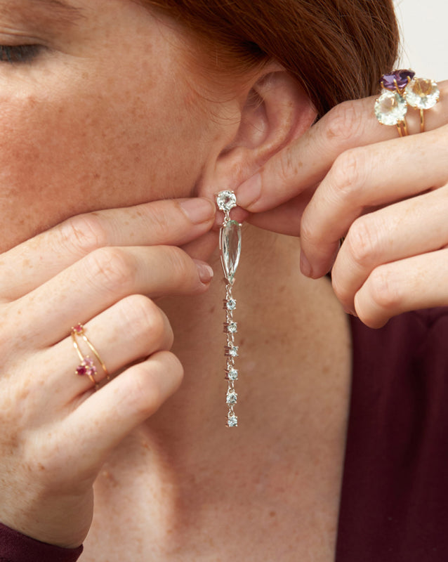 PENDIENTES CADENA PLATA BAÑADO EN ORO 18KT AMARILLO CON TURMALINA Y PRASIOLITA