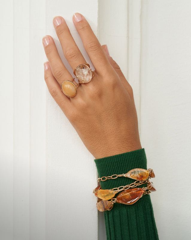 COLLAR AROS DE PLATA BAÑADO EN ORO 18 KT AMARILLO CON PIEDRAS DE CUARZO HEMATOIDE